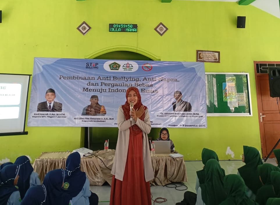 MTsN 7 Jember mengadakan kegiatan pembinaan bertema Anti-Bullying, Anti NAPZA, dan Pergaulan Bebas dengan menghadirkan tiga narasumber dari kepolisian dan perguruan tinggi pada hari ini.